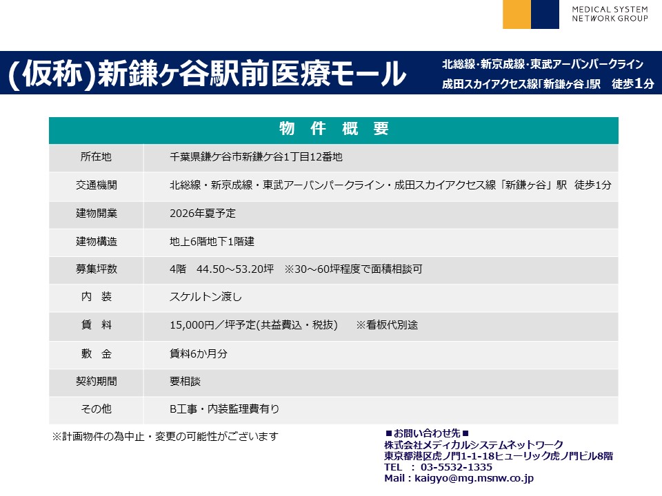 駅直結の新築商業施設内の医療モール計画! |