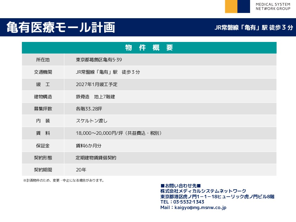 | メリット | 住宅街近接・駅チカ・競合医療機関少ない・新築ビル・医療専用ビル | ||||||||||