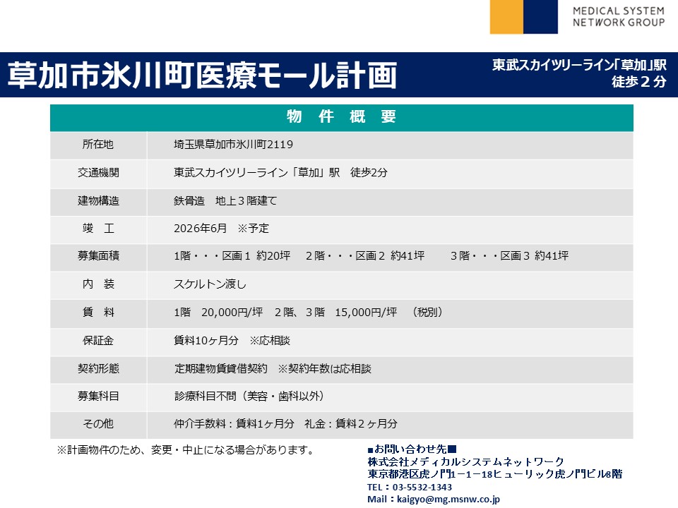 | メリット | 駅チカ・新築ビル・医療専用ビル・定期借家 | ||||||||||