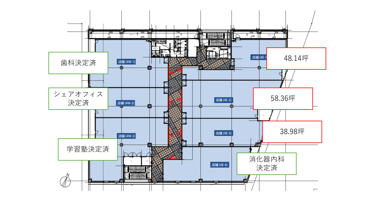 | メリット | 人口増エリア・住宅街近接・駅チカ・子育て世代多い・高齢者多い・新築ビル・即入居可・定期借家 | ||||||||||